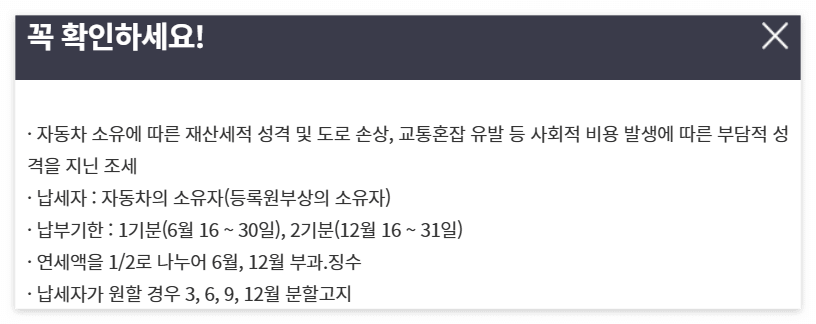 특히 자동차세 납부는 반드시 놓치지 말아야 할 중요한 항목입니다.