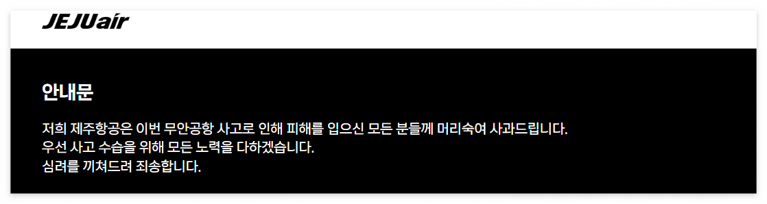 제주항공 항공기 추락 대국민 사과문