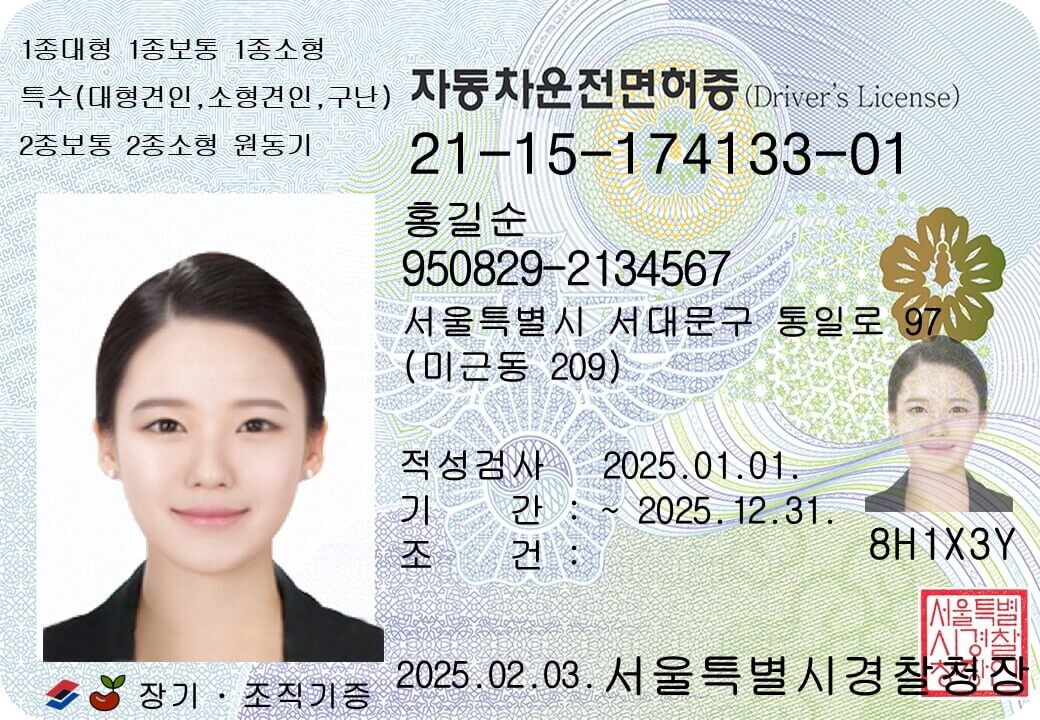 - 적성검사 또는 갱신 시 자동으로 새로운 디자인의 면허증으로 교체됩니다.