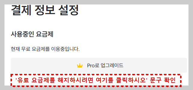 4️⃣ Pro 요금제 사용 시 하단 '유료 요금제를 해지하시려면 여기를 클릭하세요' 문구 클릭