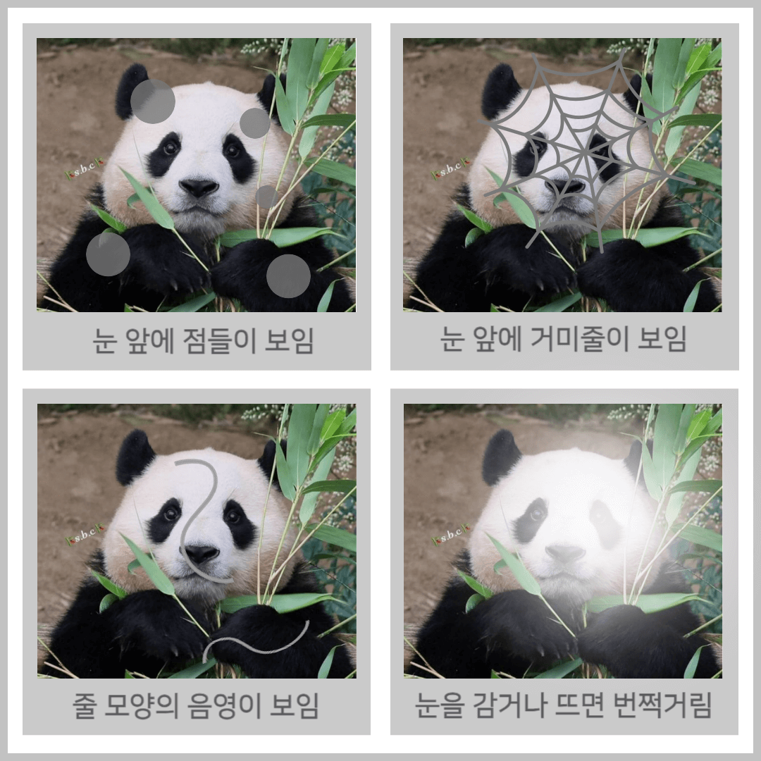 - 가장 흔한 증상: 눈 속에 부유물들이 떠다니는 것처럼 보임